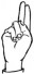 На ћирилици написано ШАЛЕ ВАСИЉЕВ састоји се из 11 слова [?]. Исписано ћириличном једноручном азбуком за глувонеме: